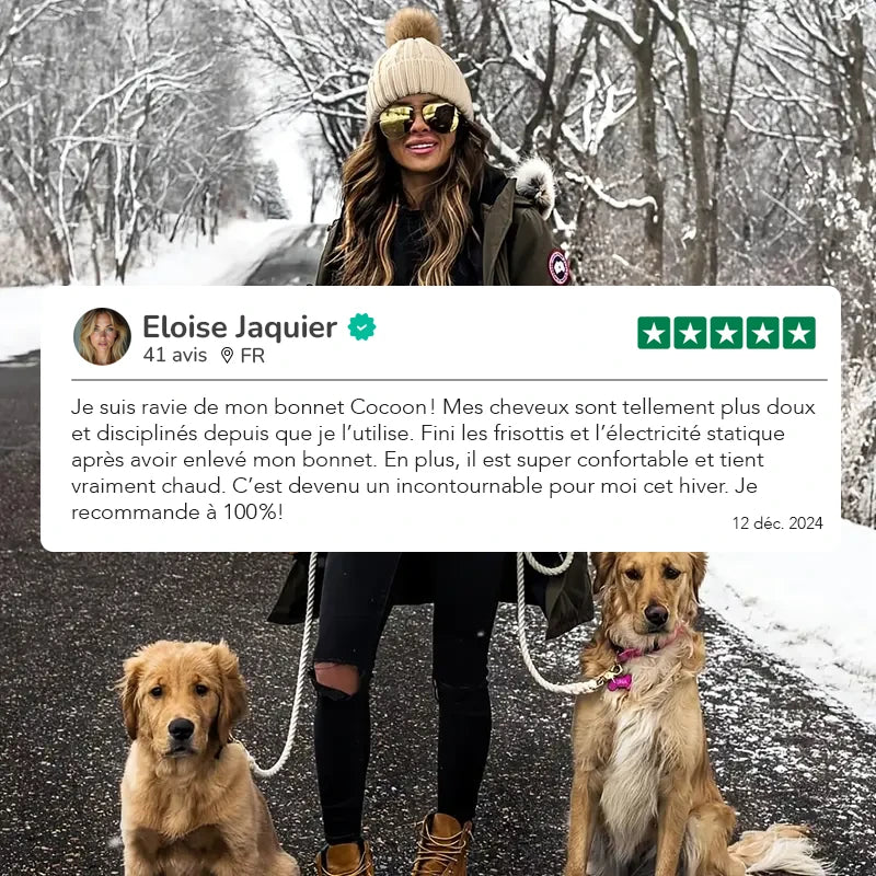 Avec le bonnet Cocoon, vos cheveux restent doux, brillants et disciplinés, même après une journée complète en extérieur. Et tout ça, en restant au chaud et élégante. Un must-have pour affronter l’hiver en toute sérénité !