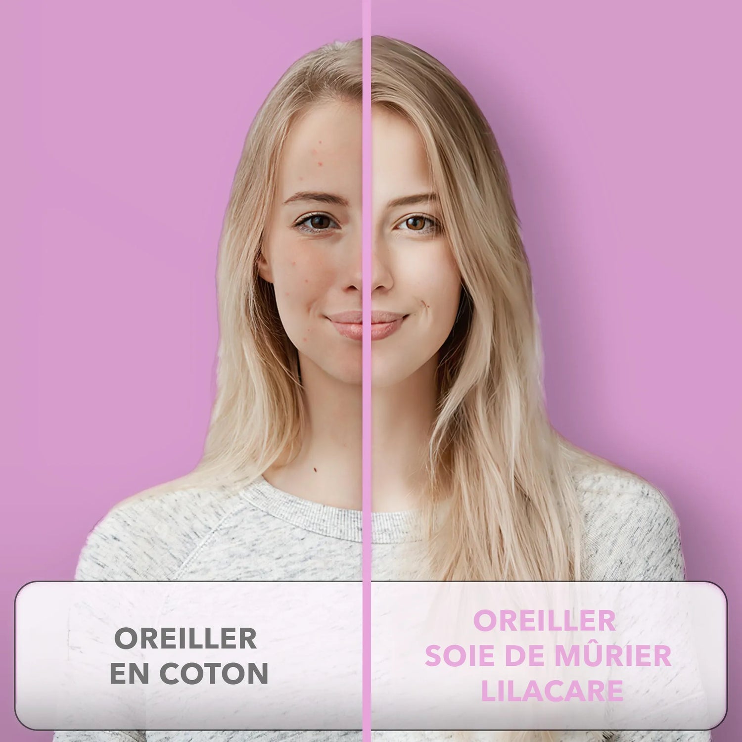 Explorez l'incomparable douceur de la taie d'oreiller LilaCare, spécialement conçue pour diminuer les frottements, protéger la peau et les cheveux en réduisant au minimum les enchevêtrements, les cassures et les rides.